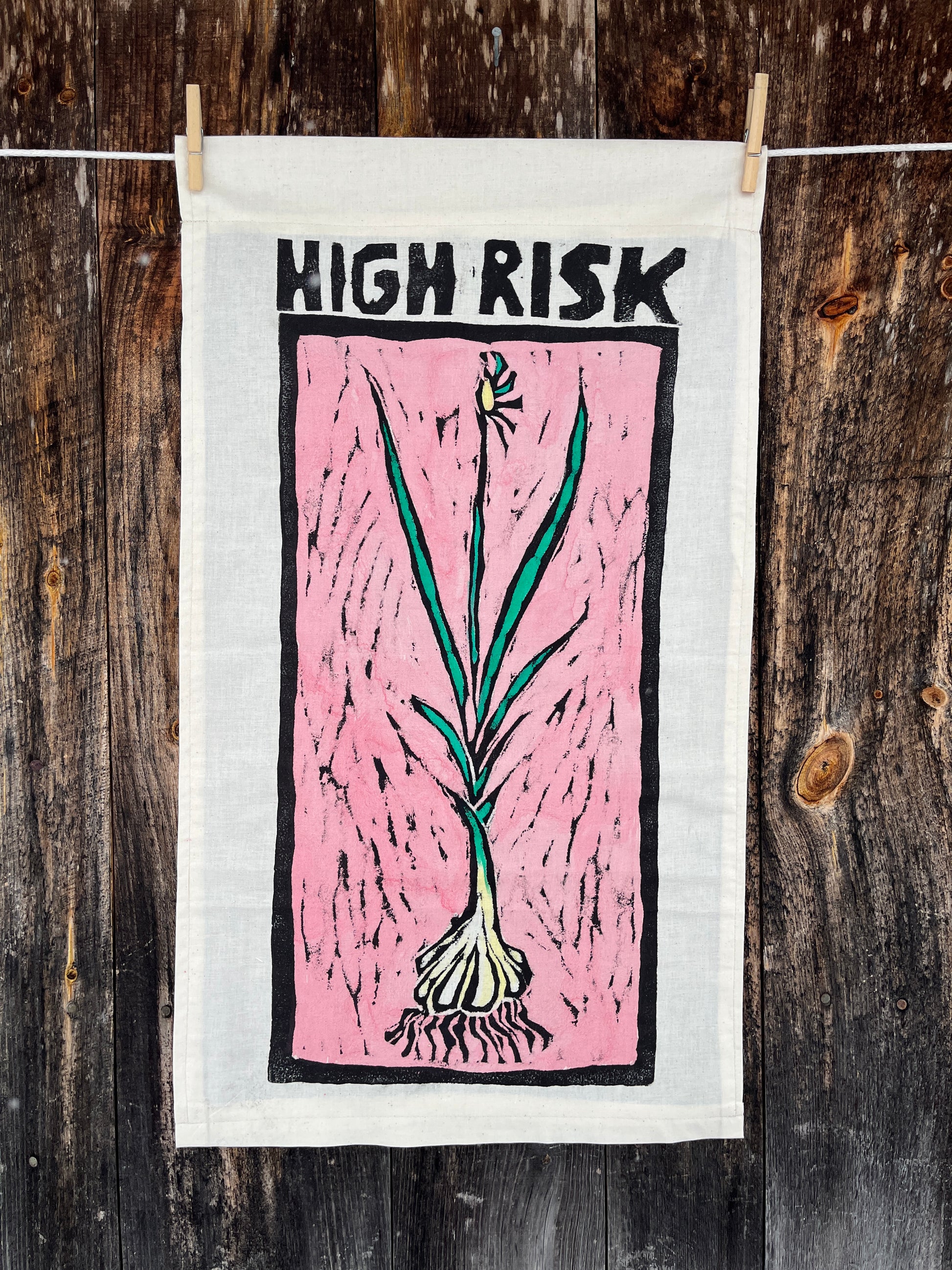 Banners are hand printed from Peter Schumann’s masonite cuts and are painted and sewn-by-hand in our print shop, in Glover, Vermont. Banners are made with printing ink on unbleached cotton, unless otherwise stated.