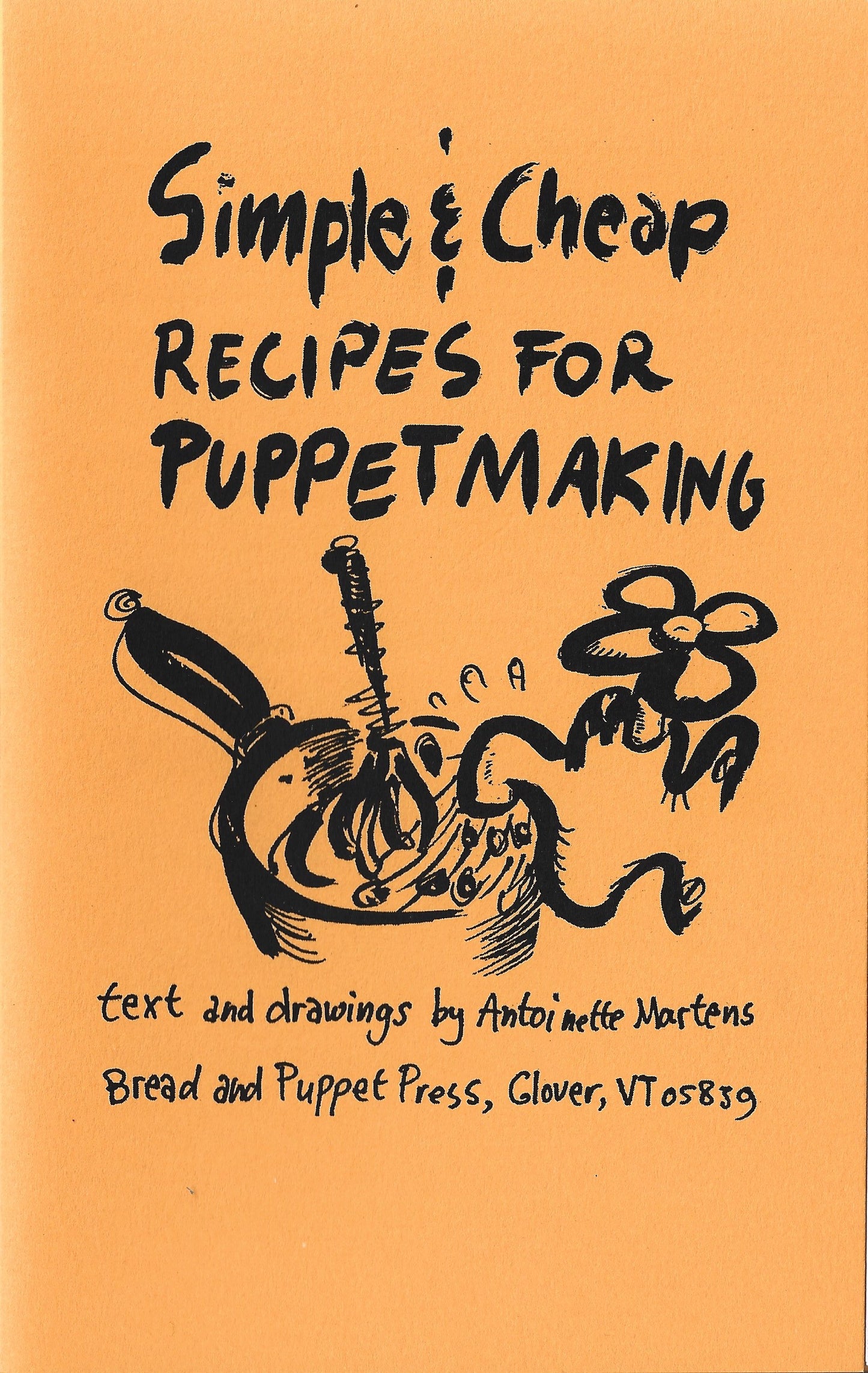 Antoinette Martens. Simple & Cheap Recipes for Puppetmaking. Glover, VT: Bread & Puppet Press, 1997 (3rd ed. 2020). 13pp; 13.5x21.5cm; pbk; staple bound; b&w; offset printed; ed. 1000.